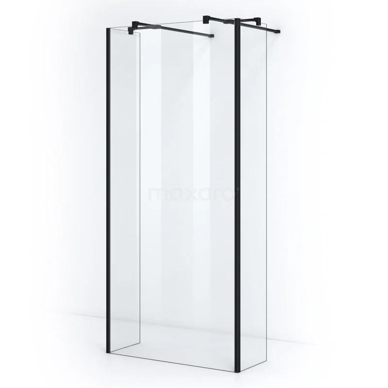Pearl Walk-in shower | 100 cm Matte black Clear glass Free-standing wall with side walls