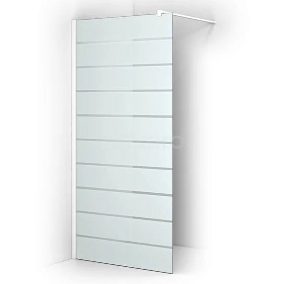 Pearl Walk-in shower | 100 cm Matte white Clear with matt stripes Fixed wall