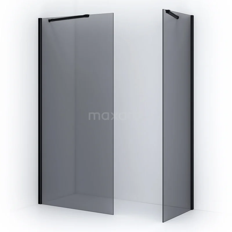 Pearl Walk-in shower | 100x80 cm Matte black Smoke glass 2 fixed walls