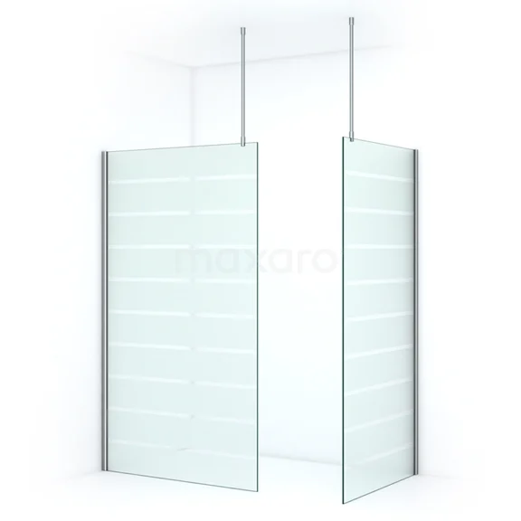 Pearl Walk-in shower | 100x90 cm Chrome Clear with matt stripes 2 fixed walls