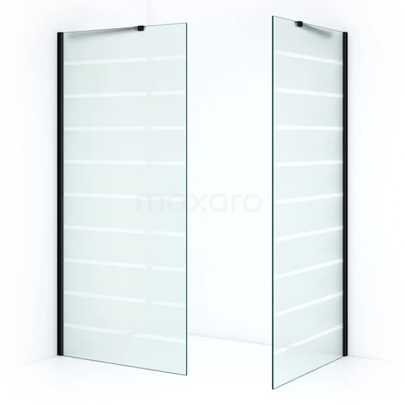 Pearl Walk-in shower | 100x90 cm Matte black Clear with matt stripes 2 fixed walls