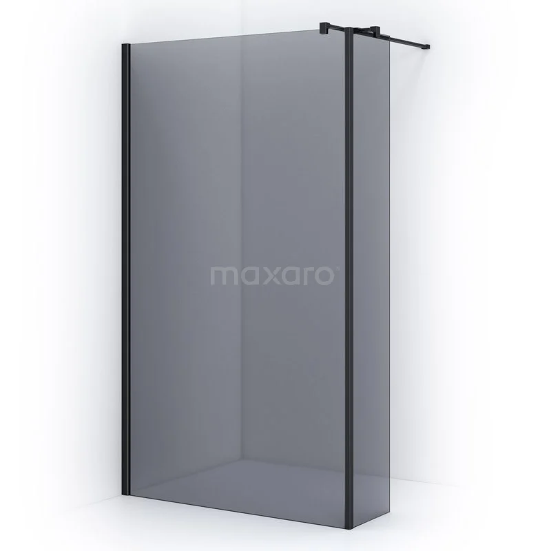 Pearl Walk-in shower | 120 cm Matte black Smoke glass Fixed wall with side panel
