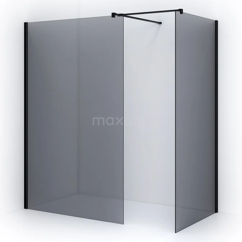 Pearl Walk-in shower | 120x100 cm Matte black Smoke glass 2 fixed walls