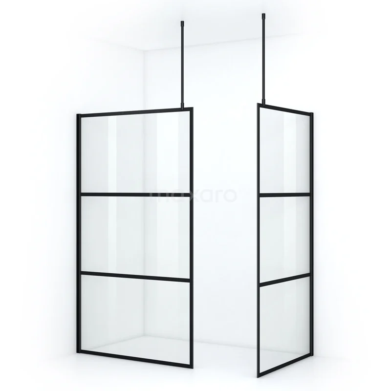 Pearl Walk-in shower | 120x90 cm Matte black Clear with 4 black stripes 2 fixed walls