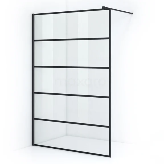 Pearl Walk-in shower | 140 cm Matte black Clear with 6 black stripes Fixed wall
