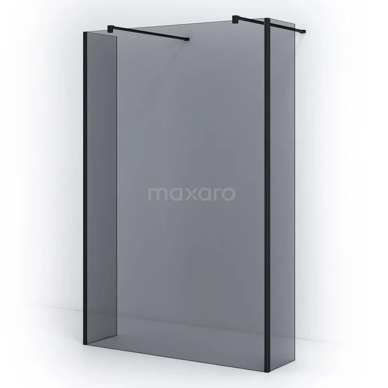 Pearl Walk-in shower | 140 cm Matte black Smoke glass Free-standing wall with side walls