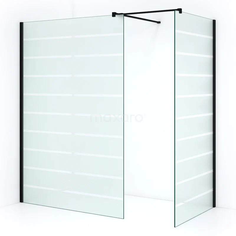 Pearl Walk-in shower | 140x100 cm Matte black Clear with matt stripes 2 fixed walls