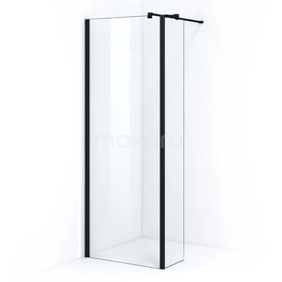 Pearl Walk-in shower | 80 cm Matte black Clear glass Fixed wall with side panel