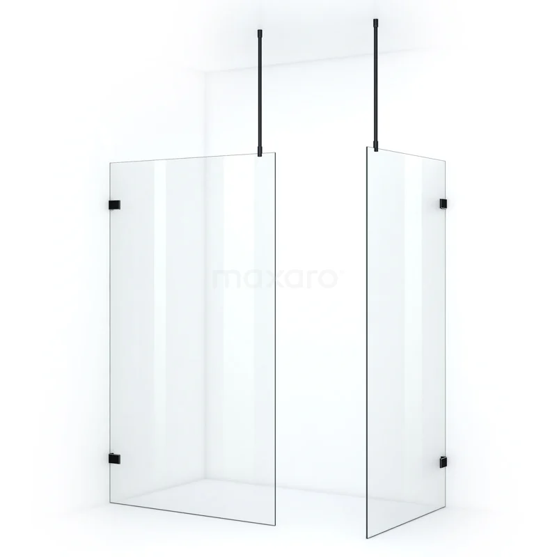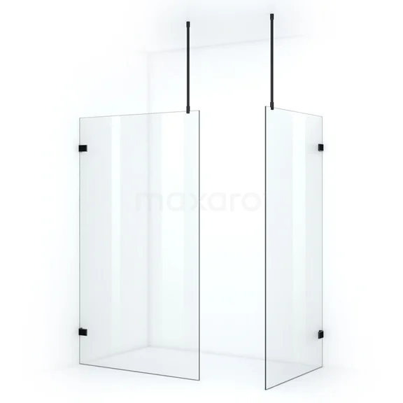 Quartz Walk-in shower | 120x110 cm Matte black Clear glass 2 fixed walls