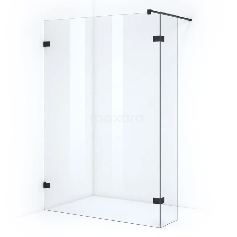 Quartz Walk-in shower | 140 cm Matte black Clear glass Fixed wall with side panel