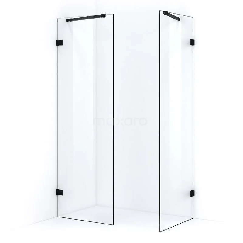 Quartz Walk-in shower | 80x80 cm Matte black Clear glass 2 fixed walls