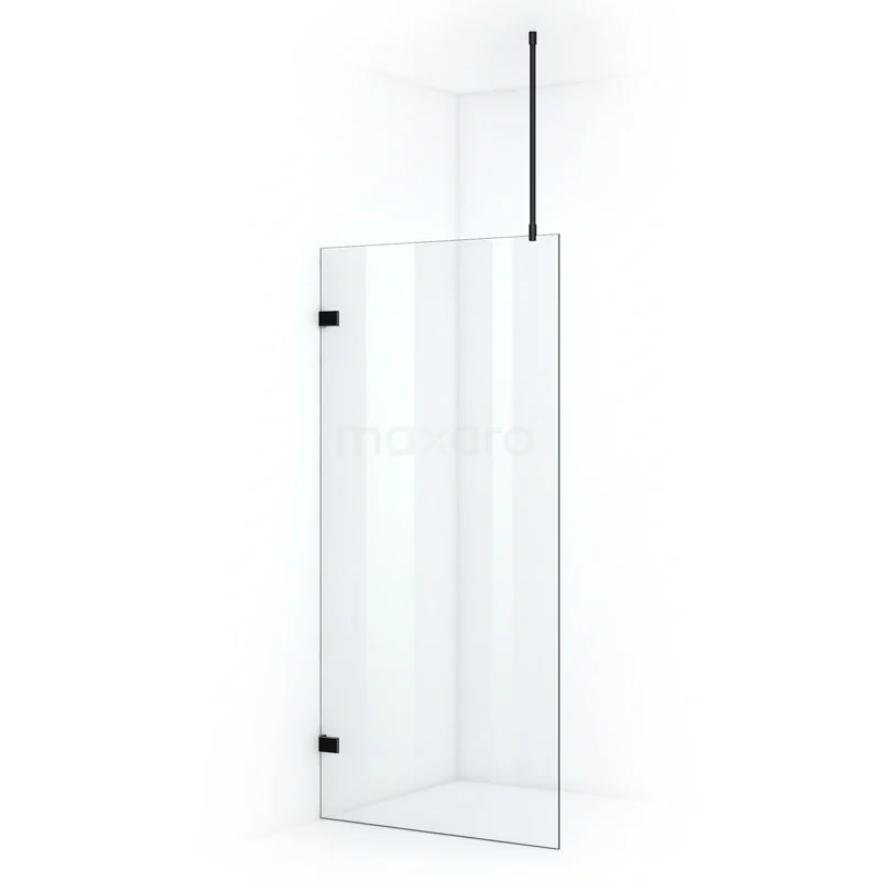 Quartz Walk-in shower | 90 cm Matte black Clear glass Fixed wall