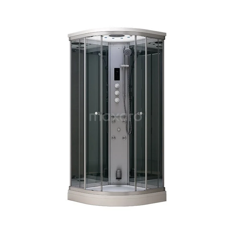 Design The 100x100 cm steam shower offers one user space and is ideal for a relaxing moment for yourself. The sliding door makes getting in and out very easy and is also space-saving. This quarter-round design model features 6 mm clear safety glass and brilliant mirror glass. Together with the silver powder-coated frame, this creates a modern look. The shower tray and roof made of mineral marble match it perfectly.