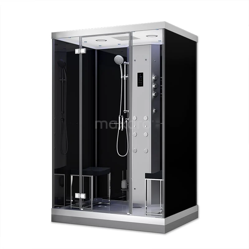 De stoomcabine is uitgerust met een afvoergoot onderaan de deur, zodat waterdruppels niet op de grond vallen.