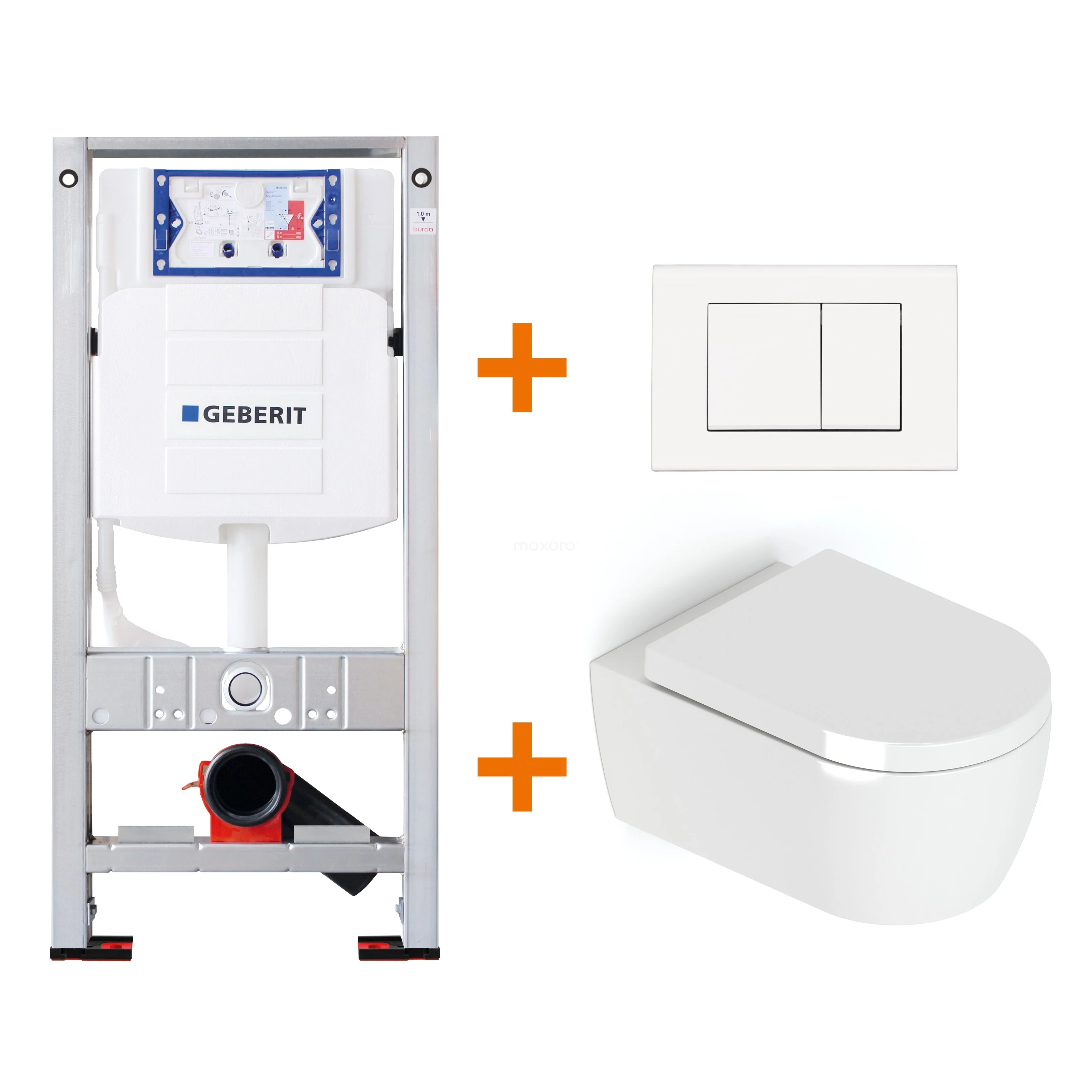 Glossy white toilet set with rim + Maxaro Flush Slim Pro built-in cistern with sound insulation
