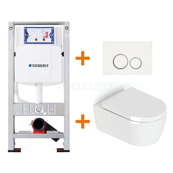 Glossy white toilet set with rim + Maxaro Flush Slim Pro built-in cistern with sound insulation