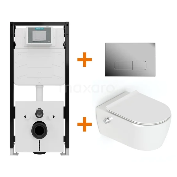 Met deze complete toiletset haal je in één keer alles in huis voor een stijlvol, functioneel en betaalbaar hangtoilet met bidetfunctie. De set bevat een hoogglans wit Doppio bidettoilet, een softclose toiletzitting, het hoogwaardige Maxaro Flush Pro inbouwreservoir en een strak vormgegeven bedieningspaneel. Dankzij de perfecte afstemming tussen de onderdelen geniet je van optimale prestaties en comfort, zonder onnodige kosten.