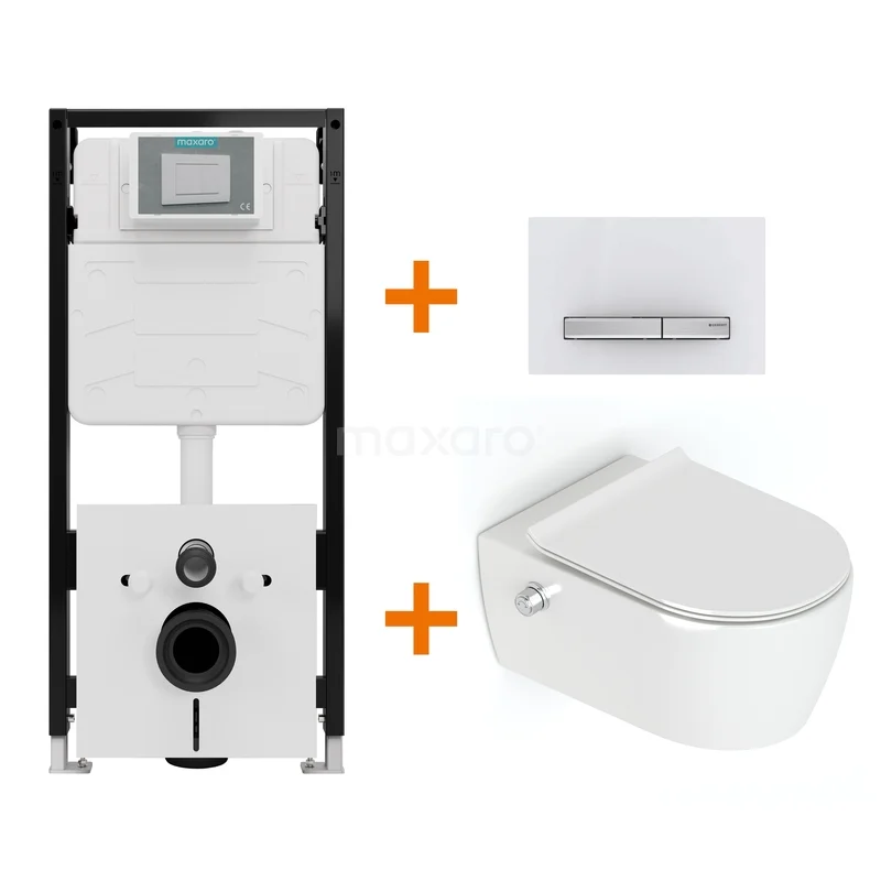 Met deze complete toiletset haal je in één keer alles in huis voor een stijlvol, functioneel en betaalbaar hangtoilet met bidetfunctie. De set bevat een hoogglans wit Doppio bidettoilet, een softclose toiletzitting, het hoogwaardige Maxaro Flush Pro inbouwreservoir en een strak vormgegeven bedieningspaneel. Dankzij de perfecte afstemming tussen de onderdelen geniet je van optimale prestaties en comfort, zonder onnodige kosten.