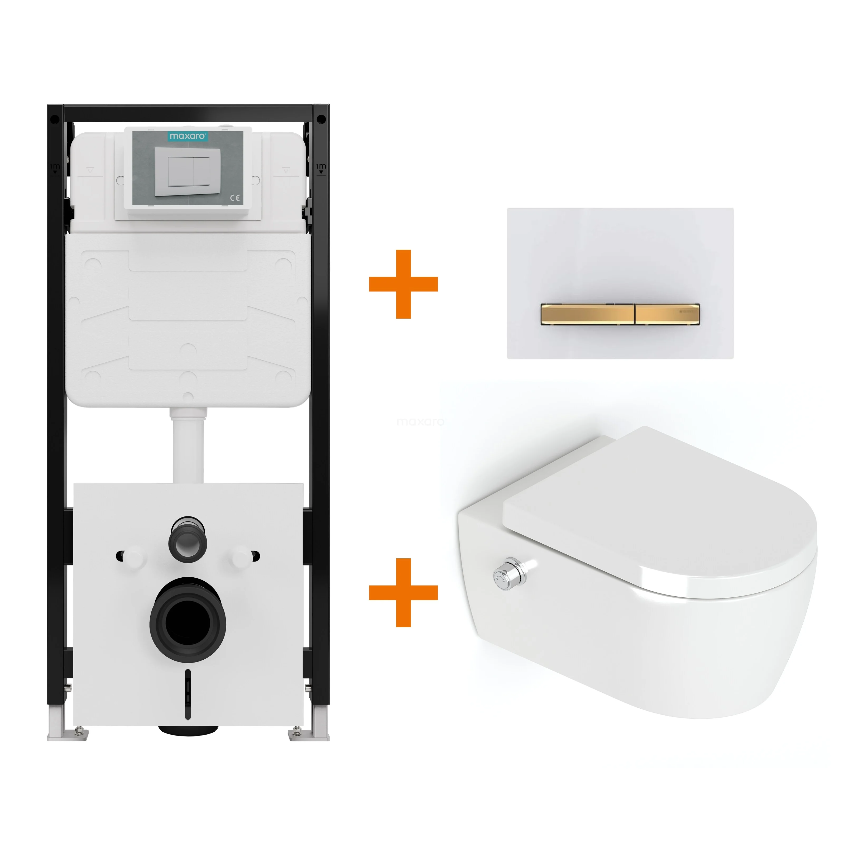 Met deze complete toiletset haal je in één keer alles in huis voor een stijlvol, functioneel en betaalbaar hangtoilet met bidetfunctie. De set bevat een hoogglans wit Doppio bidettoilet, een softclose toiletzitting, het hoogwaardige Maxaro Flush Pro inbouwreservoir en een strak vormgegeven bedieningspaneel. Dankzij de perfecte afstemming tussen de onderdelen geniet je van optimale prestaties en comfort, zonder onnodige kosten.