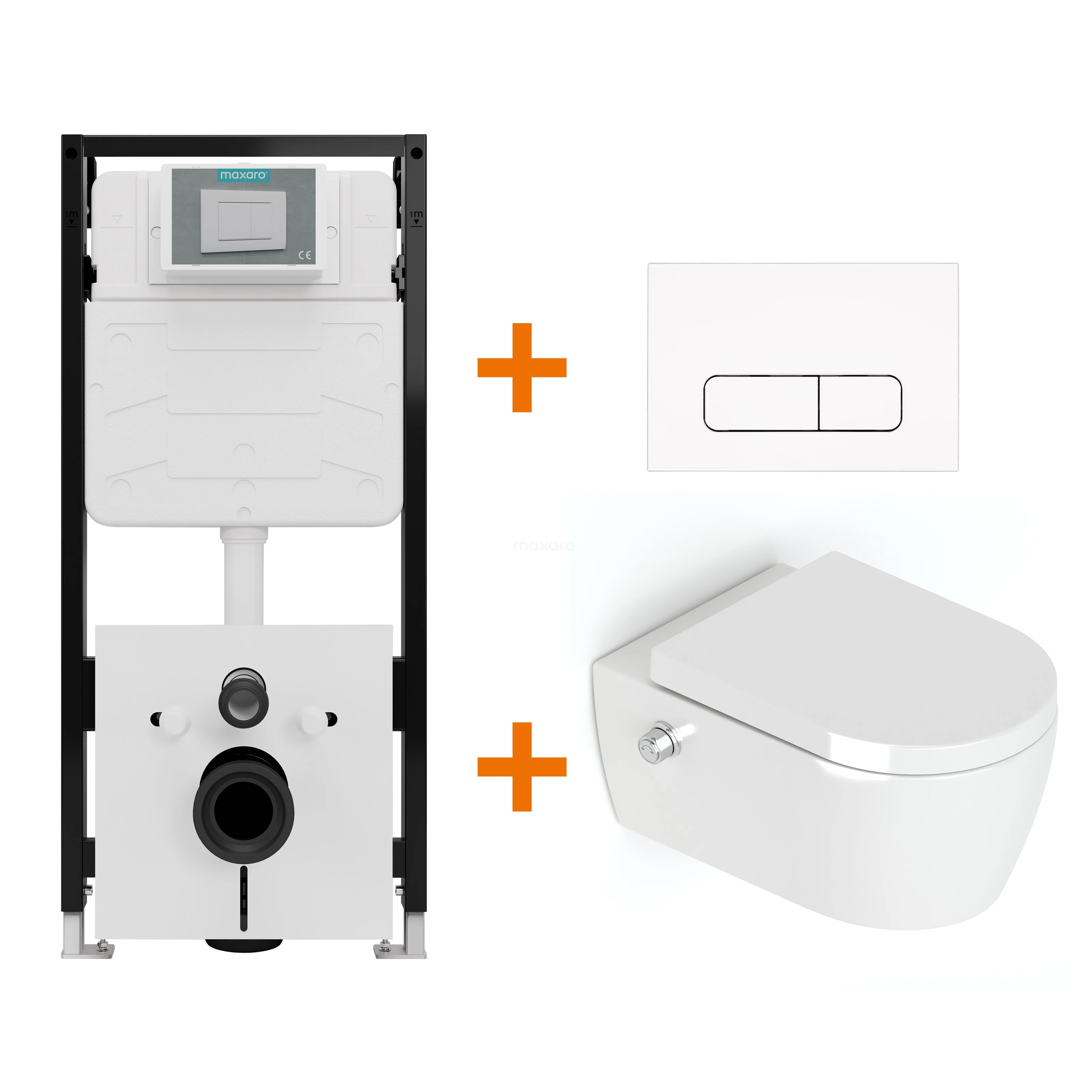 Met deze complete toiletset haal je in één keer alles in huis voor een stijlvol, functioneel en betaalbaar hangtoilet met bidetfunctie. De set bevat een hoogglans wit Doppio bidettoilet, een softclose toiletzitting, het hoogwaardige Maxaro Flush Slim Pro inbouwreservoir en een strak vormgegeven bedieningspaneel. Dankzij de perfecte afstemming tussen de onderdelen geniet je van optimale prestaties en comfort, zonder onnodige kosten.