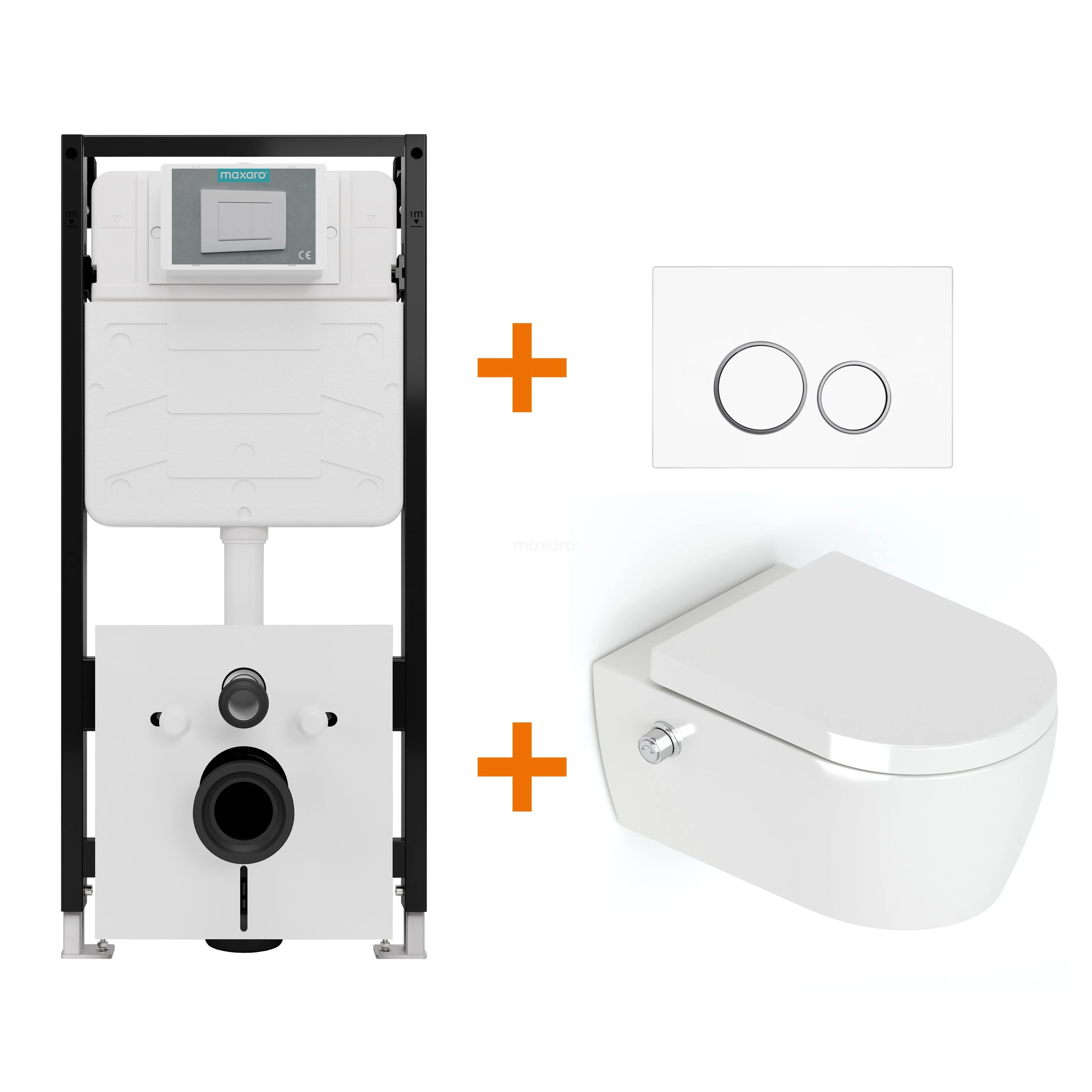 Toilet set High-gloss white Bidet without rim + Maxaro Flush Slim Pro concealed cistern with sound insulation