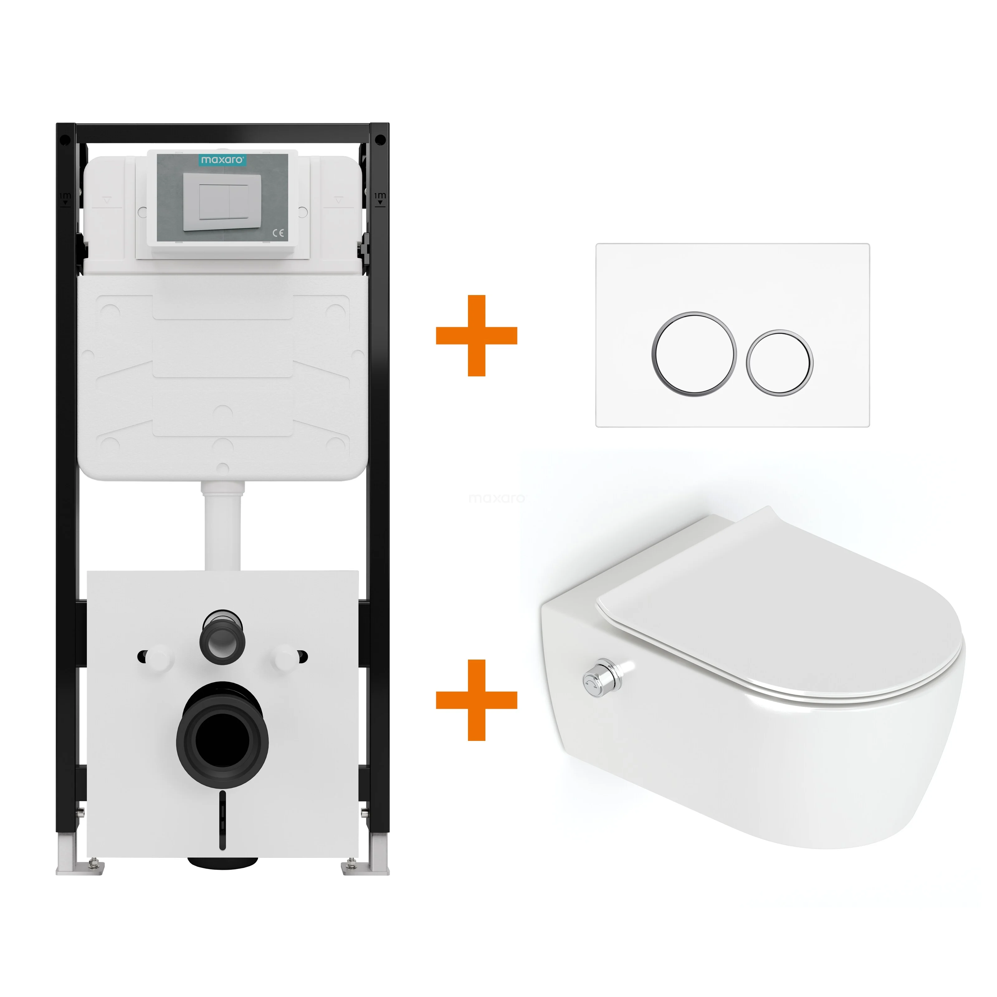 Toilet set High-gloss white Bidet without rim + Maxaro Flush Slim Pro concealed cistern with sound insulation