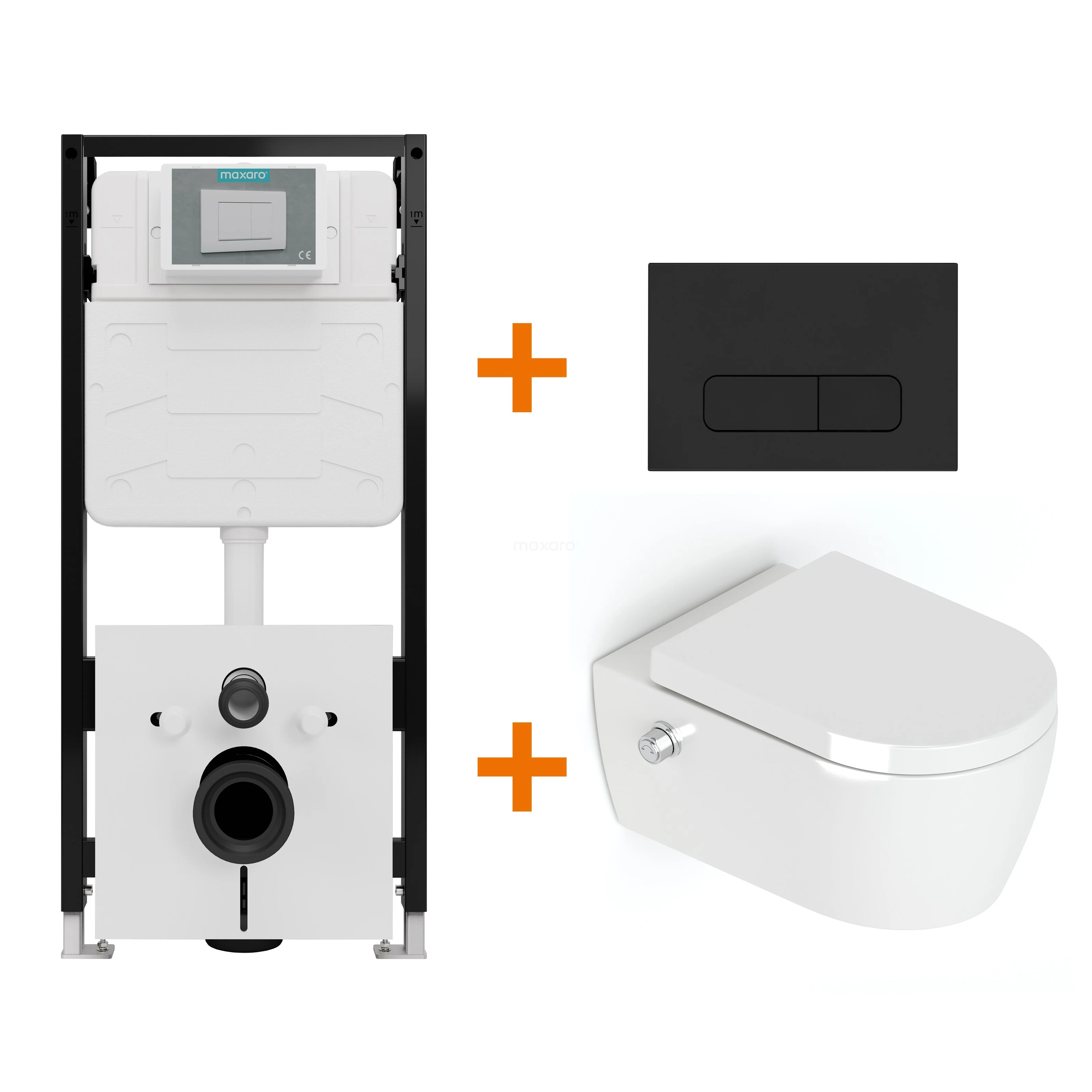 Met deze complete toiletset haal je in één keer alles in huis voor een stijlvol, functioneel en betaalbaar hangtoilet met bidetfunctie. De set bevat een hoogglans wit Doppio bidettoilet, een softclose toiletzitting, het hoogwaardige Maxaro Flush Slim Pro inbouwreservoir en een strak vormgegeven bedieningspaneel. Dankzij de perfecte afstemming tussen de onderdelen geniet je van optimale prestaties en comfort, zonder onnodige kosten.