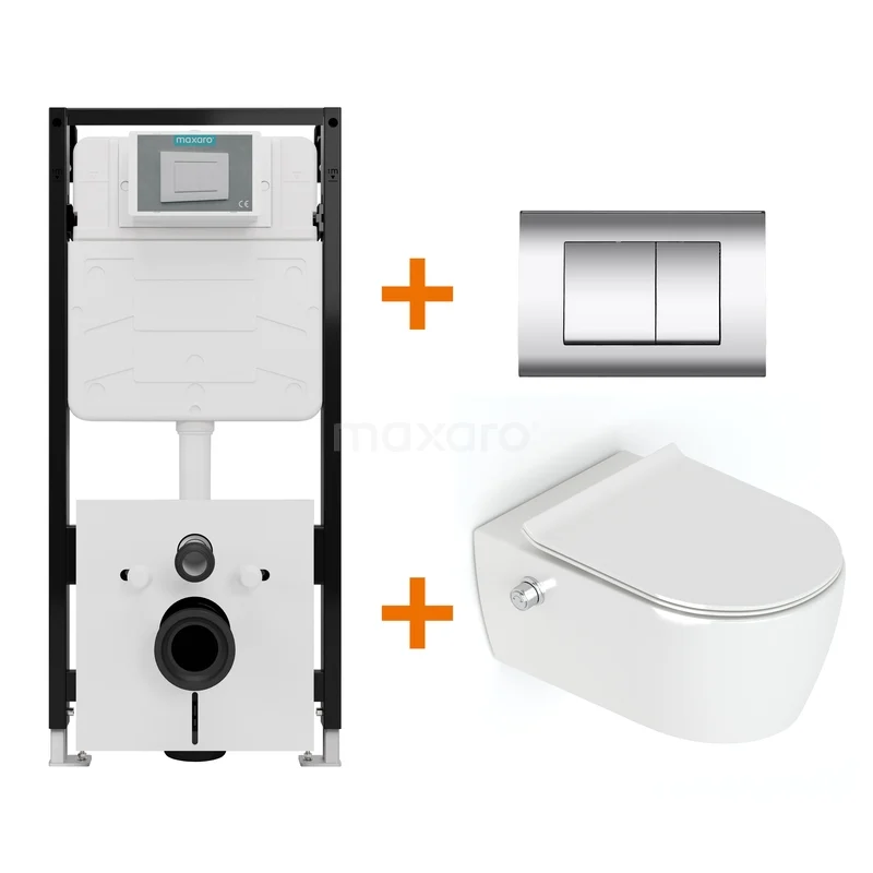 Met deze complete toiletset haal je in één keer alles in huis voor een stijlvol, functioneel en betaalbaar hangtoilet met bidetfunctie. De set bevat een hoogglans wit Doppio bidettoilet, een softclose toiletzitting, het hoogwaardige Maxaro Flush Slim Pro inbouwreservoir en een strak vormgegeven bedieningspaneel. Dankzij de perfecte afstemming tussen de onderdelen geniet je van optimale prestaties en comfort, zonder onnodige kosten.