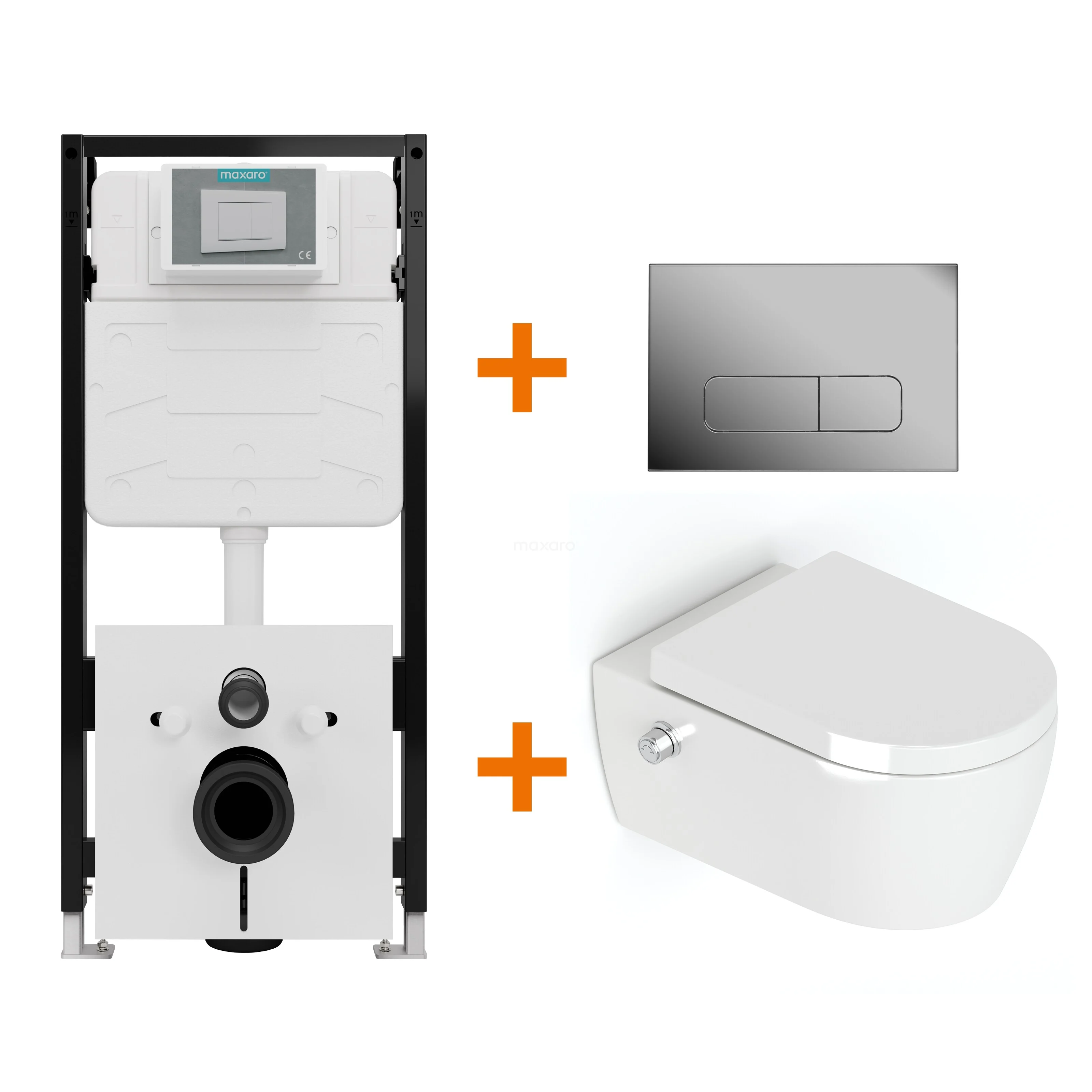 Met deze complete toiletset haal je in één keer alles in huis voor een stijlvol, functioneel en betaalbaar hangtoilet met bidetfunctie. De set bevat een hoogglans wit Doppio bidettoilet, een softclose toiletzitting, het hoogwaardige Maxaro Flush Slim Pro inbouwreservoir en een strak vormgegeven bedieningspaneel. Dankzij de perfecte afstemming tussen de onderdelen geniet je van optimale prestaties en comfort, zonder onnodige kosten.