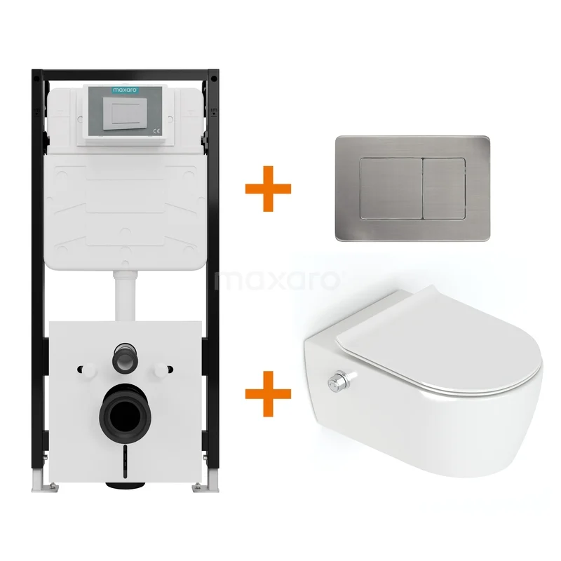 Met deze complete toiletset haal je in één keer alles in huis voor een stijlvol, functioneel en betaalbaar hangtoilet met bidetfunctie. De set bevat een hoogglans wit Doppio bidettoilet, een softclose toiletzitting, het hoogwaardige Maxaro Flush Slim Pro inbouwreservoir en een strak vormgegeven bedieningspaneel. Dankzij de perfecte afstemming tussen de onderdelen geniet je van optimale prestaties en comfort, zonder onnodige kosten.