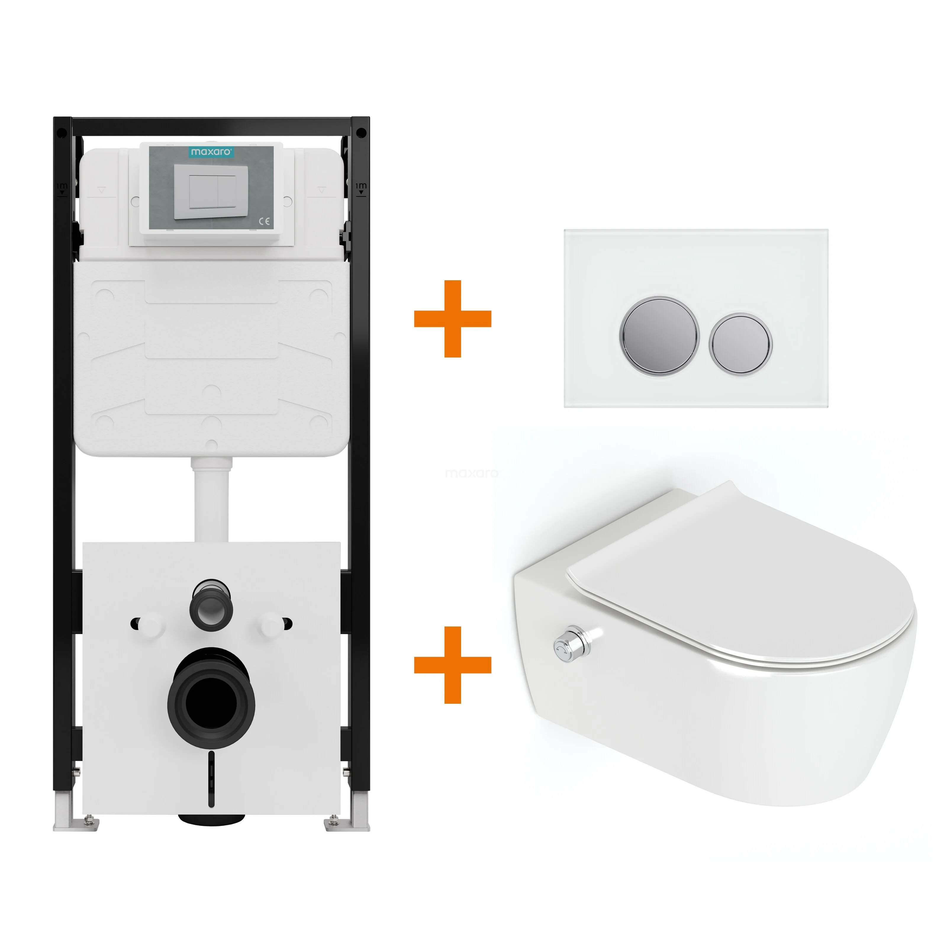 Toilet set High-gloss white Bidet without rim + Maxaro Flush Slim Pro concealed cistern with sound insulation