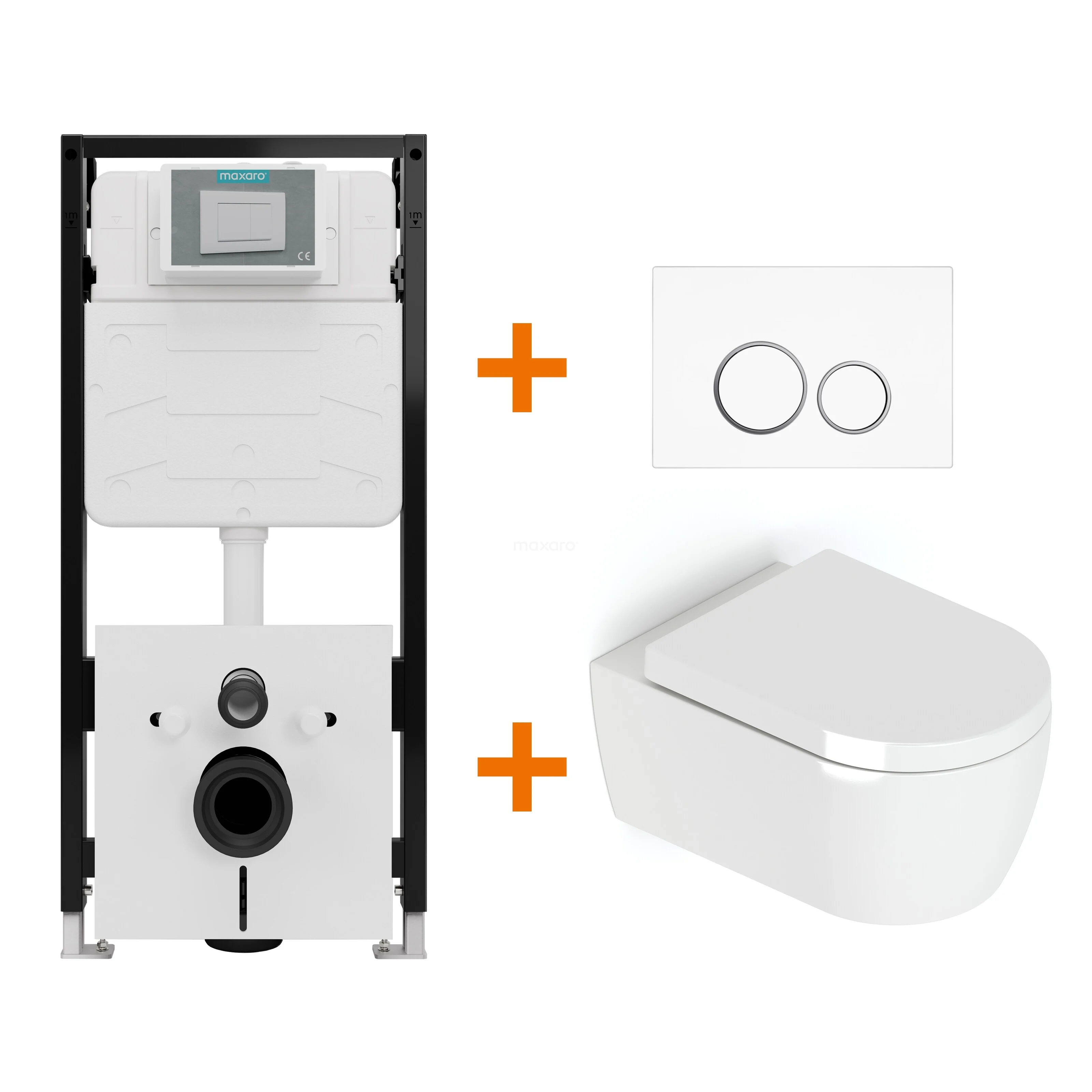 Toilet set High-gloss white with rim + Maxaro Flush Pro concealed cistern with sound insulation