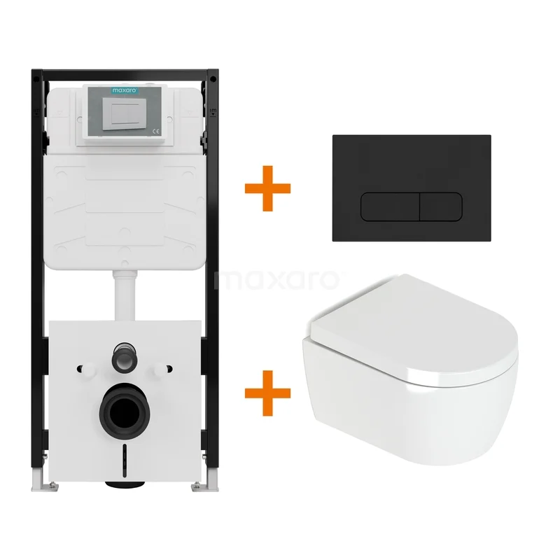 Toilet set High-gloss white with rim + Maxaro Flush Pro concealed cistern with sound insulation