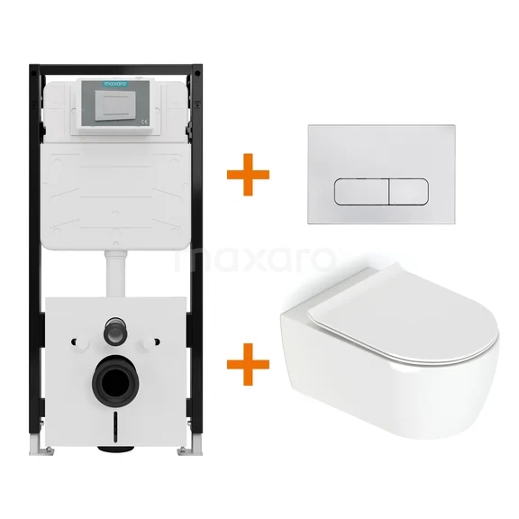 Toilet set High-gloss white with rim + Maxaro Flush Pro concealed cistern with sound insulation