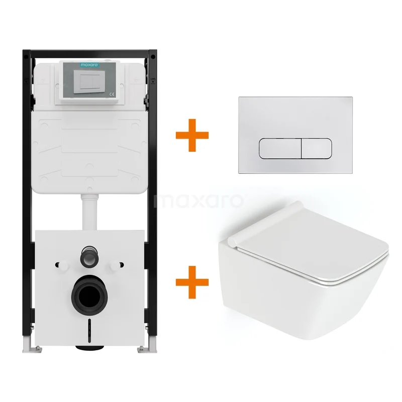 Toilet set High-gloss white with rim + Maxaro Flush Pro concealed cistern with sound insulation