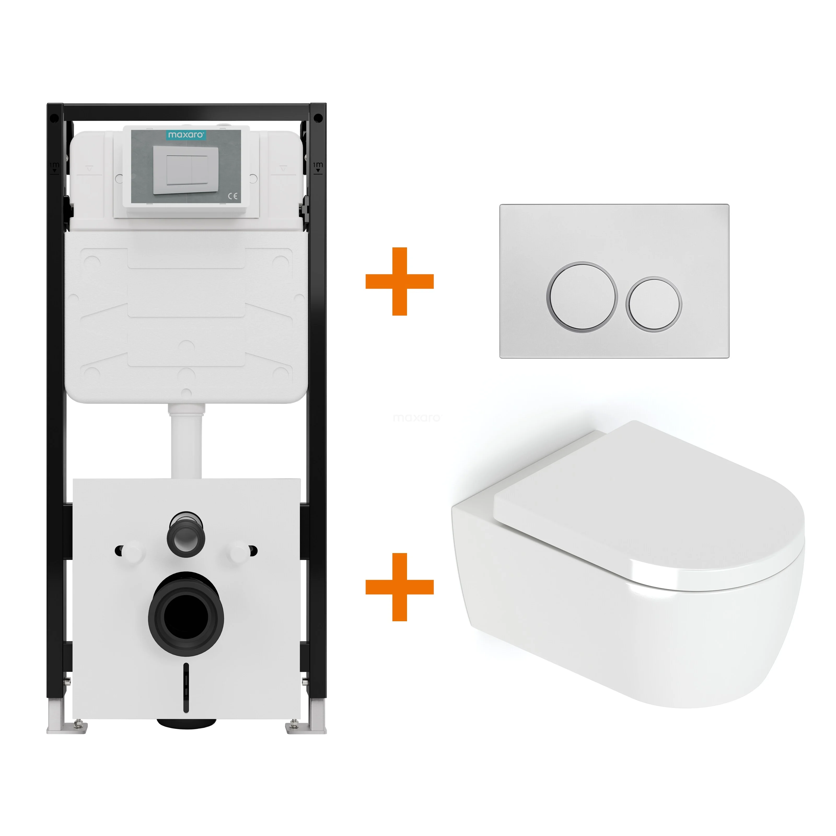 Toilet set High-gloss white with rim + Maxaro Flush Pro concealed cistern with sound insulation