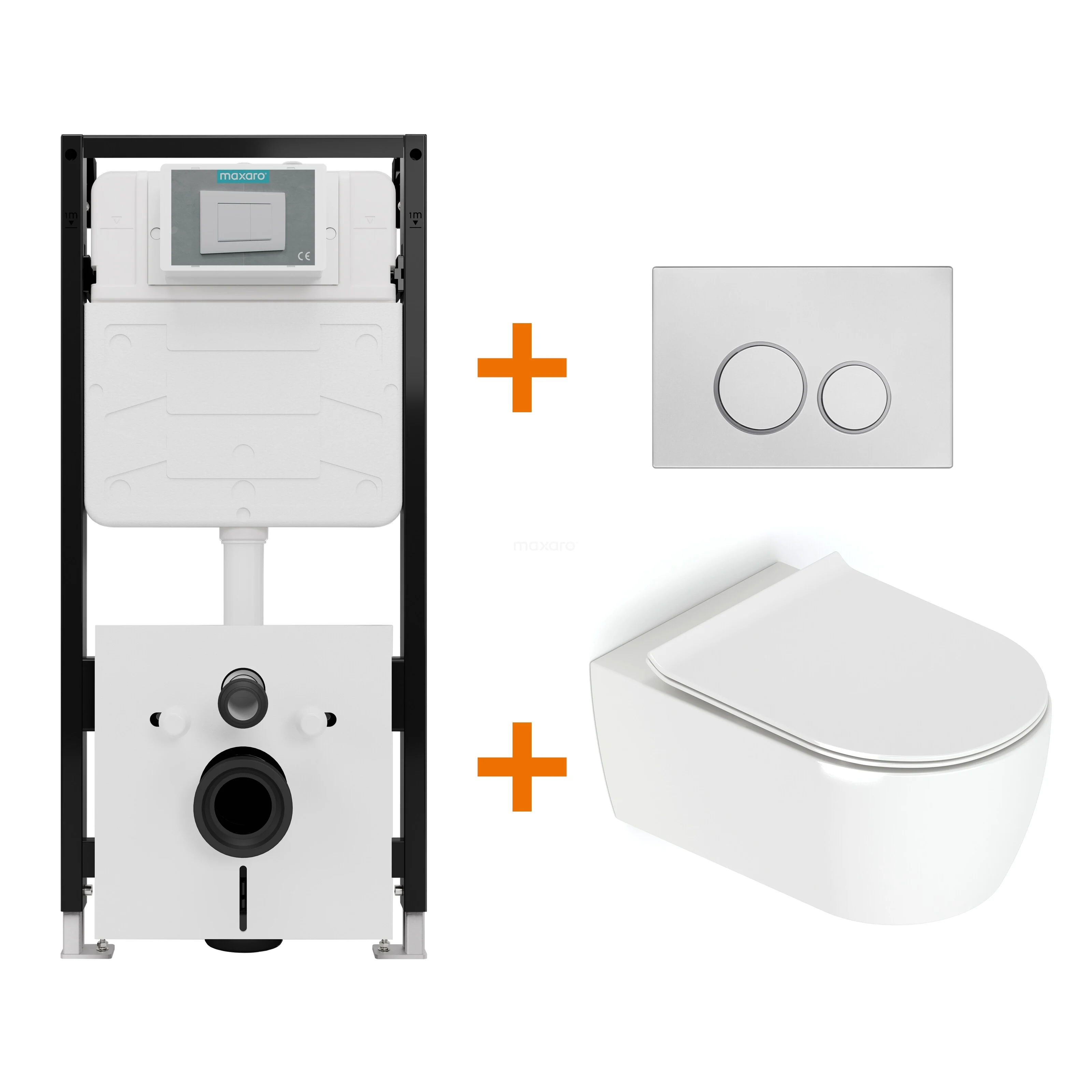 Toilet set High-gloss white with rim + Maxaro Flush Pro concealed cistern with sound insulation