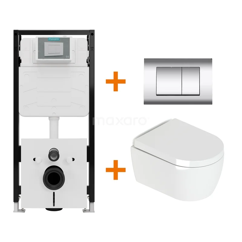 Toilet set High-gloss white with rim + Maxaro Flush Pro concealed cistern with sound insulation