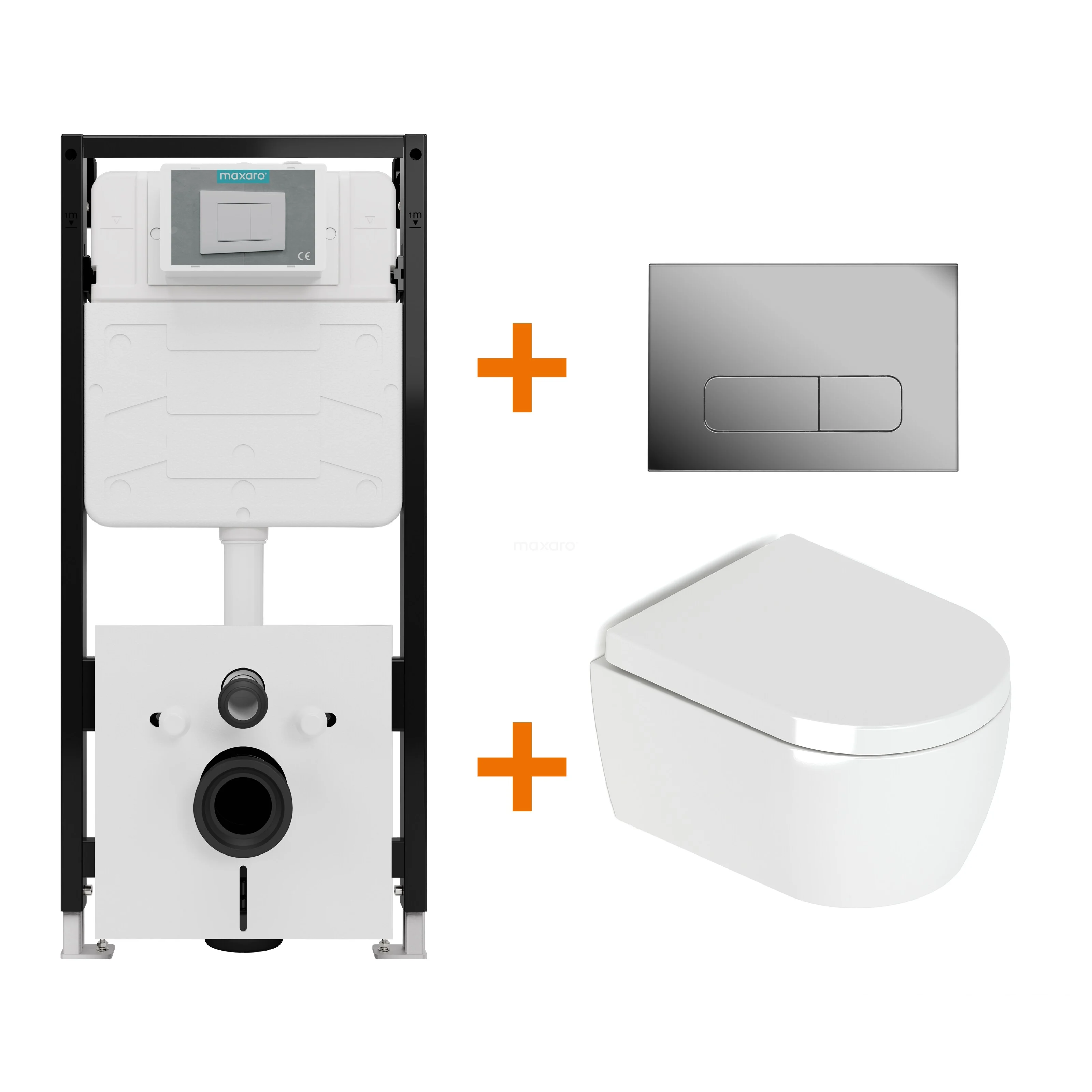 Toilet set High-gloss white with rim + Maxaro Flush Pro concealed cistern with sound insulation