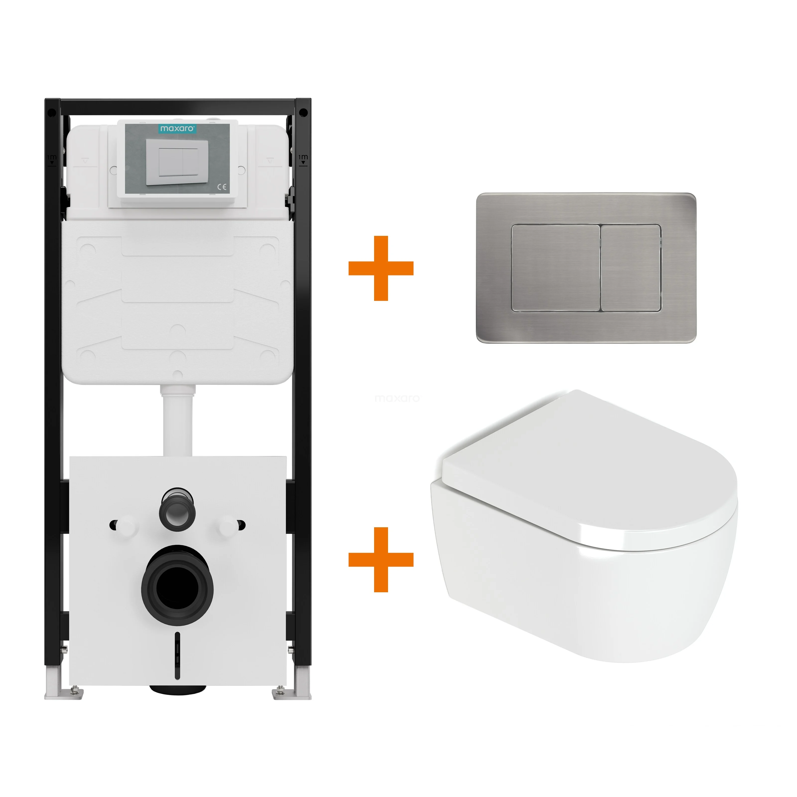 Toilet set High-gloss white with rim + Maxaro Flush Pro concealed cistern with sound insulation