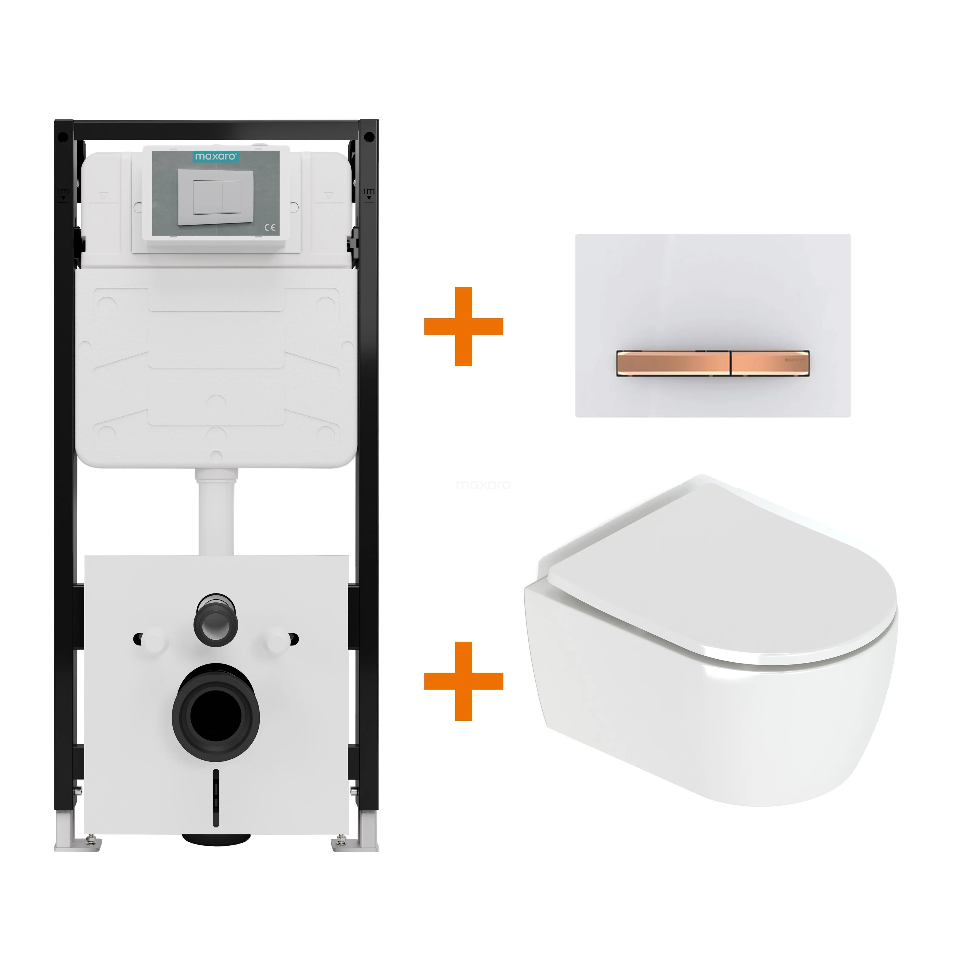 Toilet set High-gloss white with rim + Maxaro Flush Pro concealed cistern with sound insulation