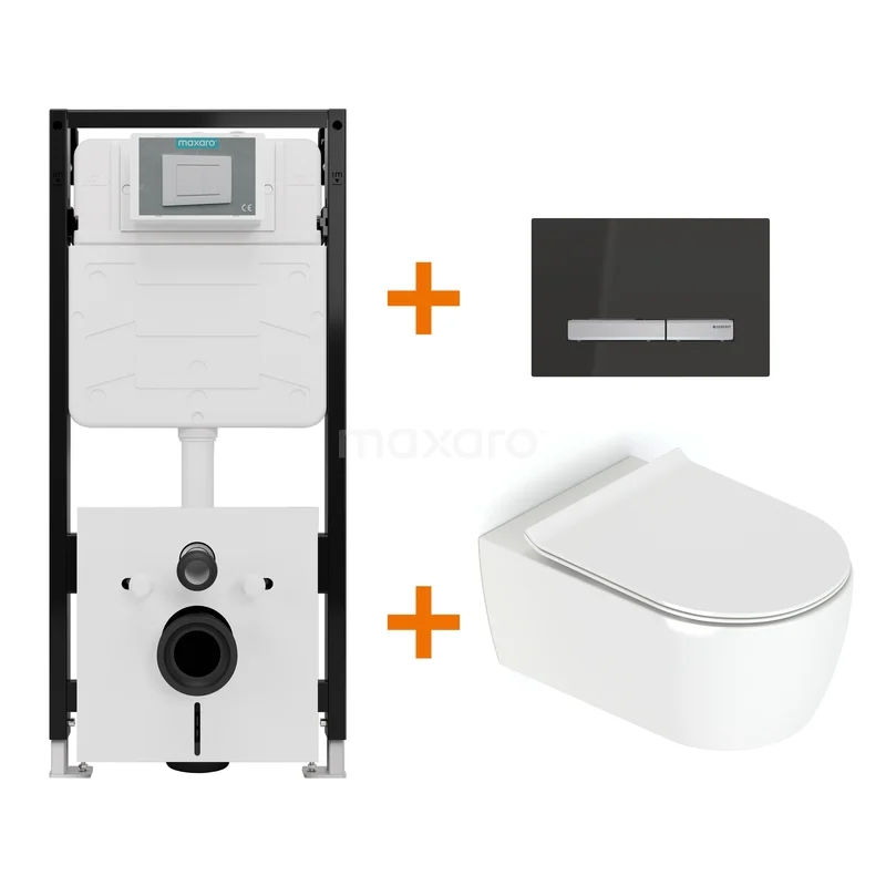 Toilet set High-gloss white with rim + Maxaro Flush Pro concealed cistern with sound insulation