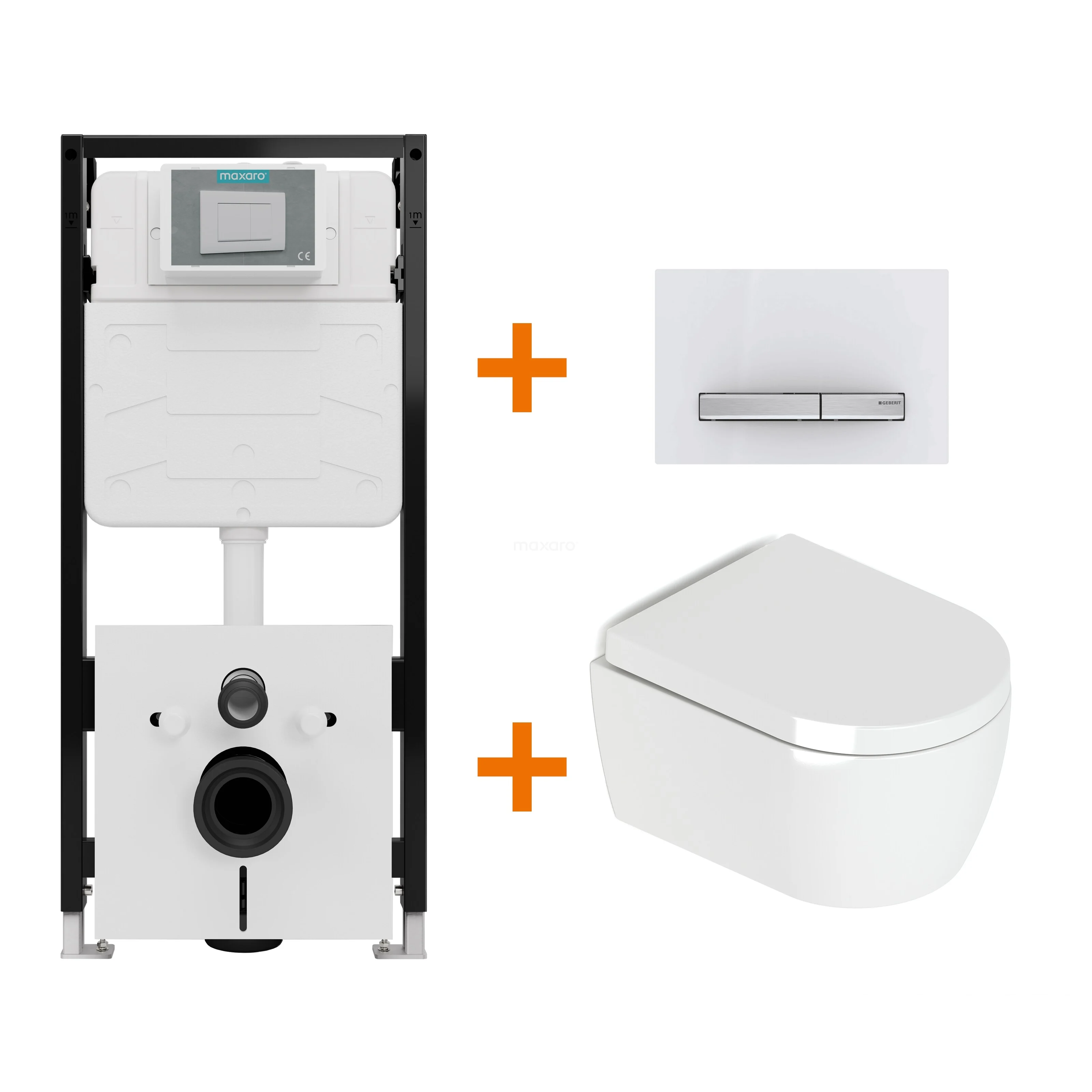 Toilet set High-gloss white with rim + Maxaro Flush Pro concealed cistern with sound insulation