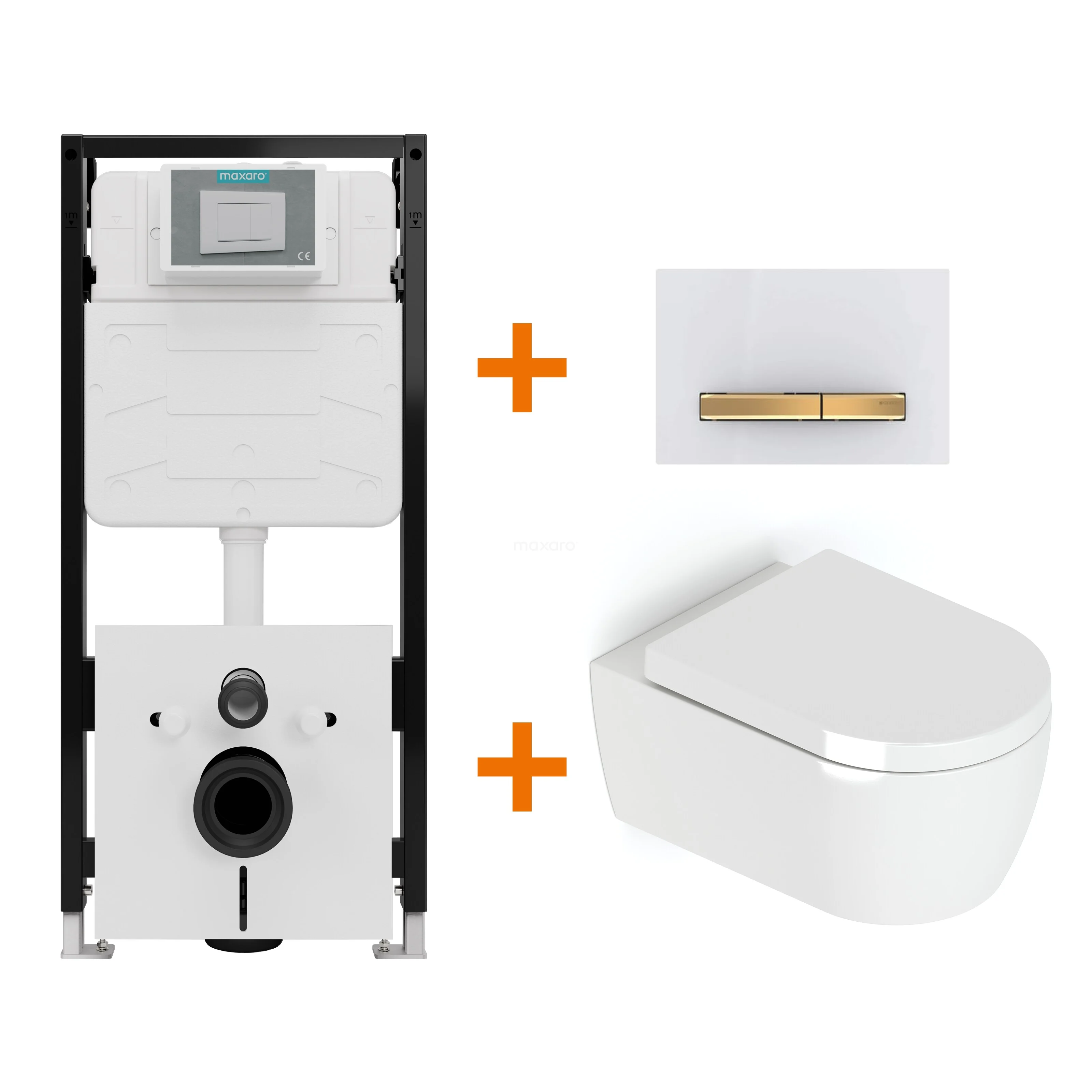 Toilet set High-gloss white with rim + Maxaro Flush Pro concealed cistern with sound insulation