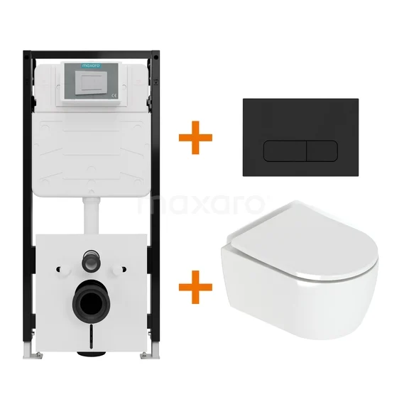 Toilet set High-gloss white with rim + Maxaro Flush Slim Pro concealed cistern with sound insulation