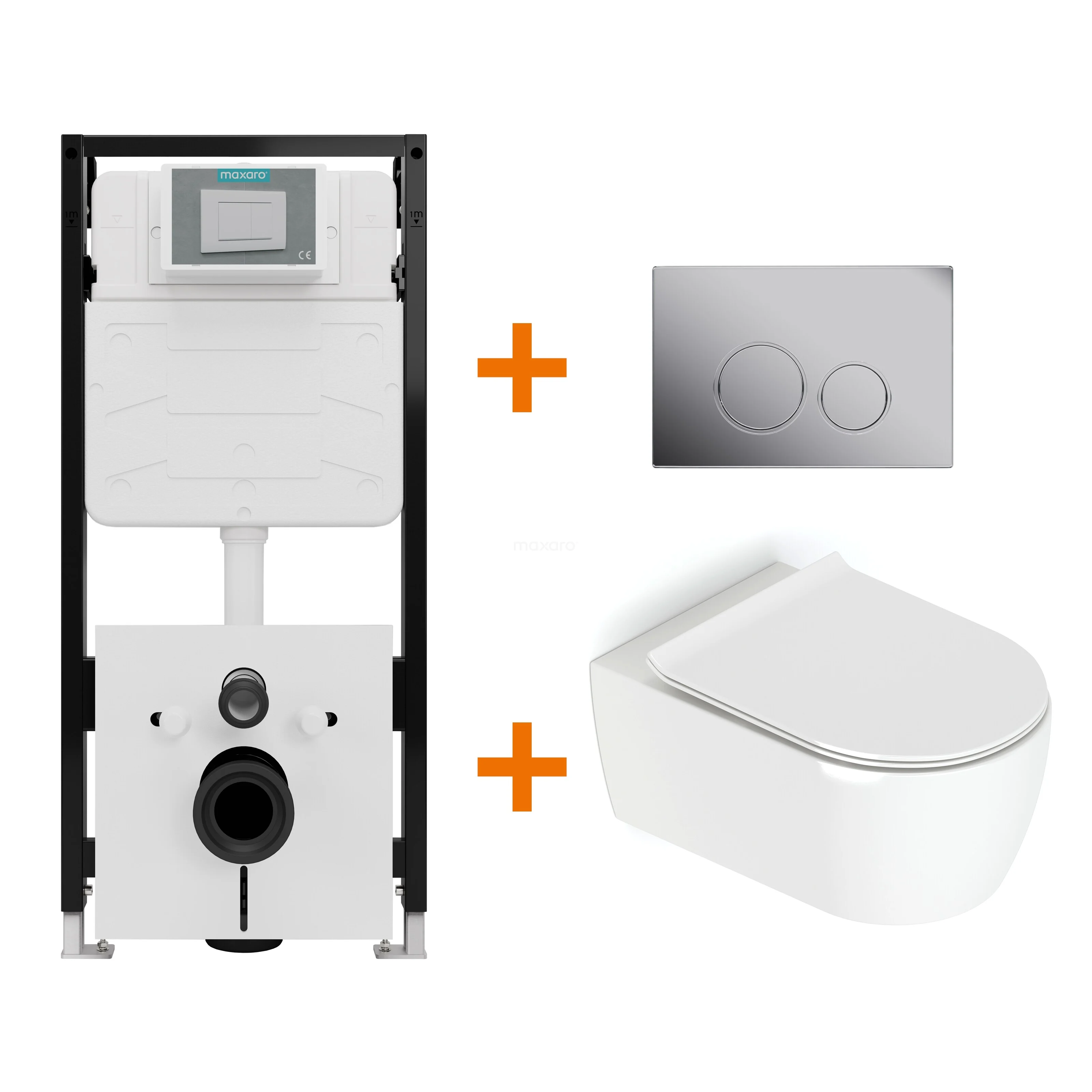 Toilet set High-gloss white with rim + Maxaro Flush Slim Pro concealed cistern with sound insulation