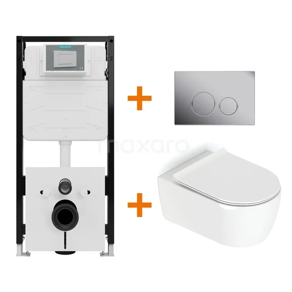 Met deze complete toiletset haal je in één keer alles in huis voor een stijlvol, functioneel en betaalbaar hangtoilet. De set bevat een hoogglans wit Classico hangtoilet, een softclose toiletzitting, het hoogwaardige Maxaro FLush Slim Pro-inbouwreservoir en een strak vormgegeven bedieningspaneel. Dankzij de perfecte afstemming tussen de onderdelen geniet je van optimale prestaties en comfort, zonder onnodige kosten.