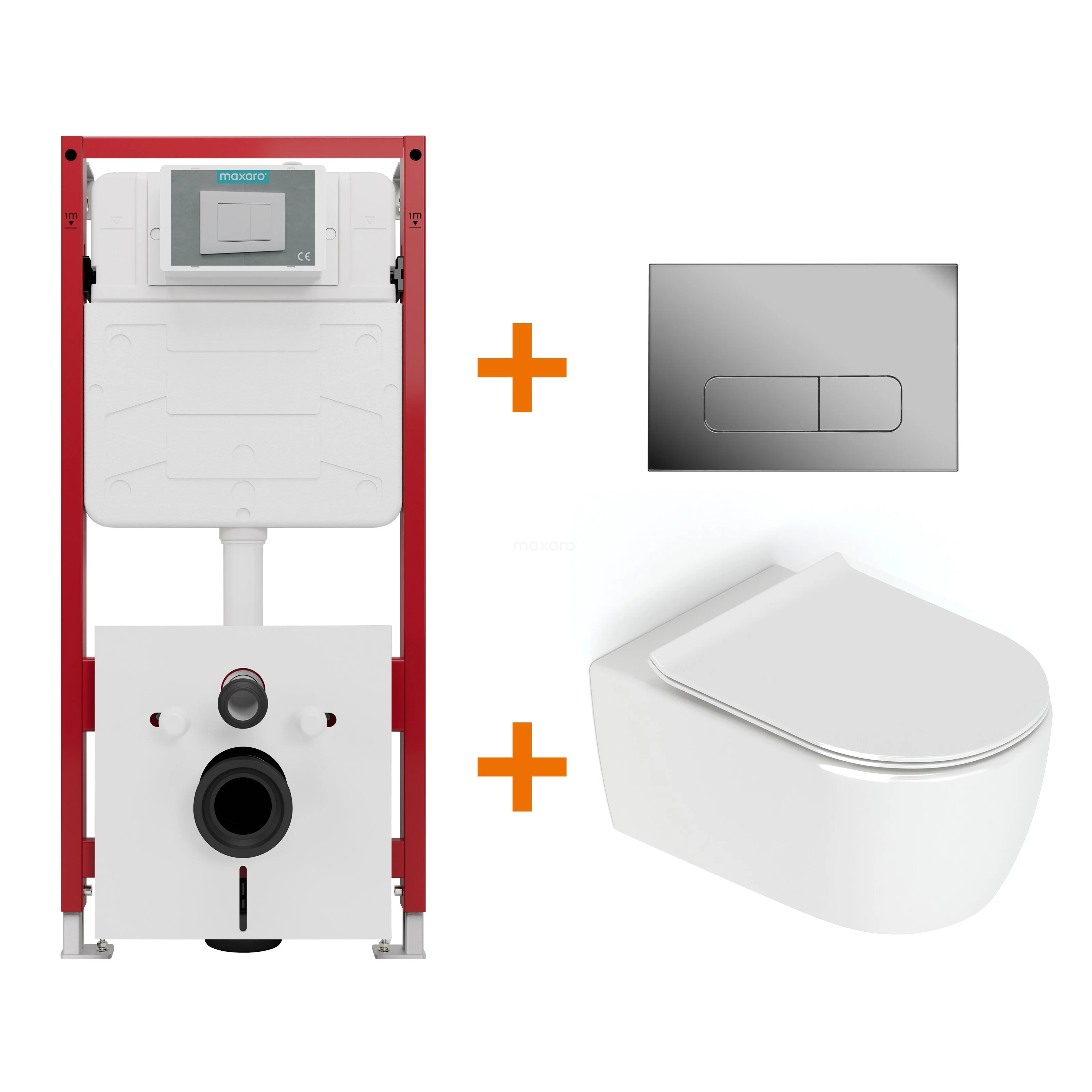 Toilet set High-gloss white without rim + Maxaro Flush concealed cisterns