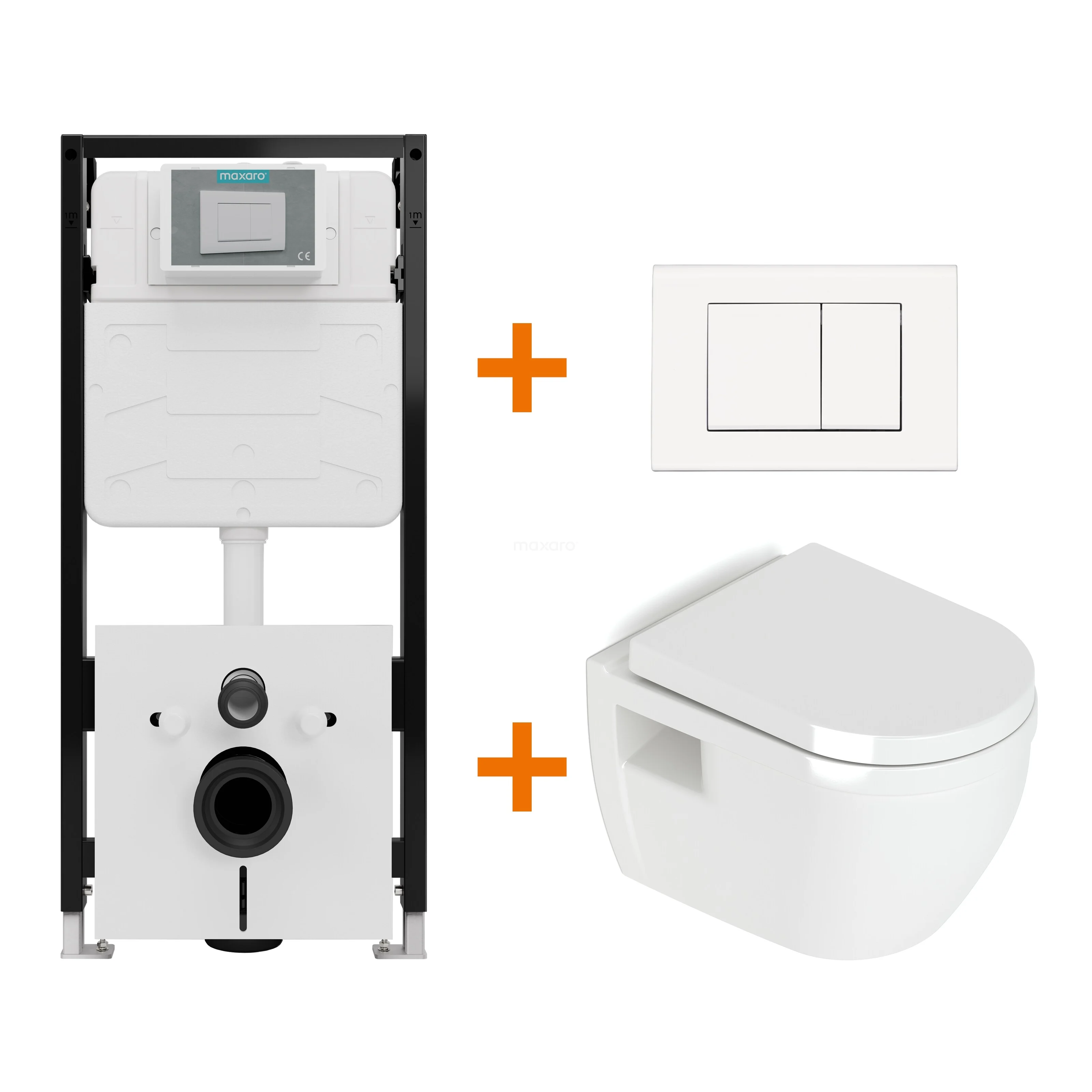 Toilet set High Gloss white without Rim + Maxaro Flush Pro built-in cistern with sound insulation