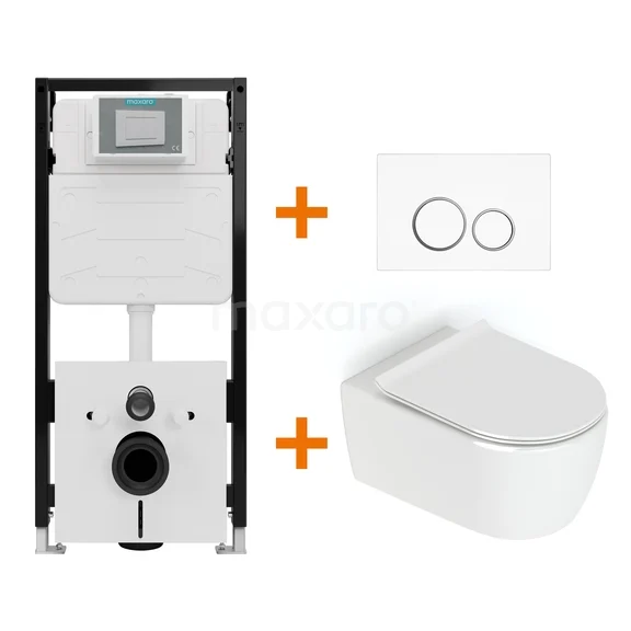 Toilet set High-gloss white without rim + Maxaro Flush Pro concealed cistern with sound insulation